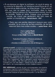Traductions françaises : Chansons extraites de « L’Opéra de 4 Sous » et « Grandeur et Décadence de la Ville de Mahagonny »